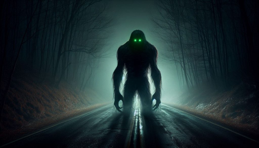 Standing in the middle of the road behind me was a massive, shadowy figure with glowing green eyes—so bright they looked like headlights burning in the dark. Its shape was wrong, almost human but not quite. I felt an overwhelming urge to stop, to look closer… but I didn’t. I slammed my foot down and tore off as fast as my truck would go.